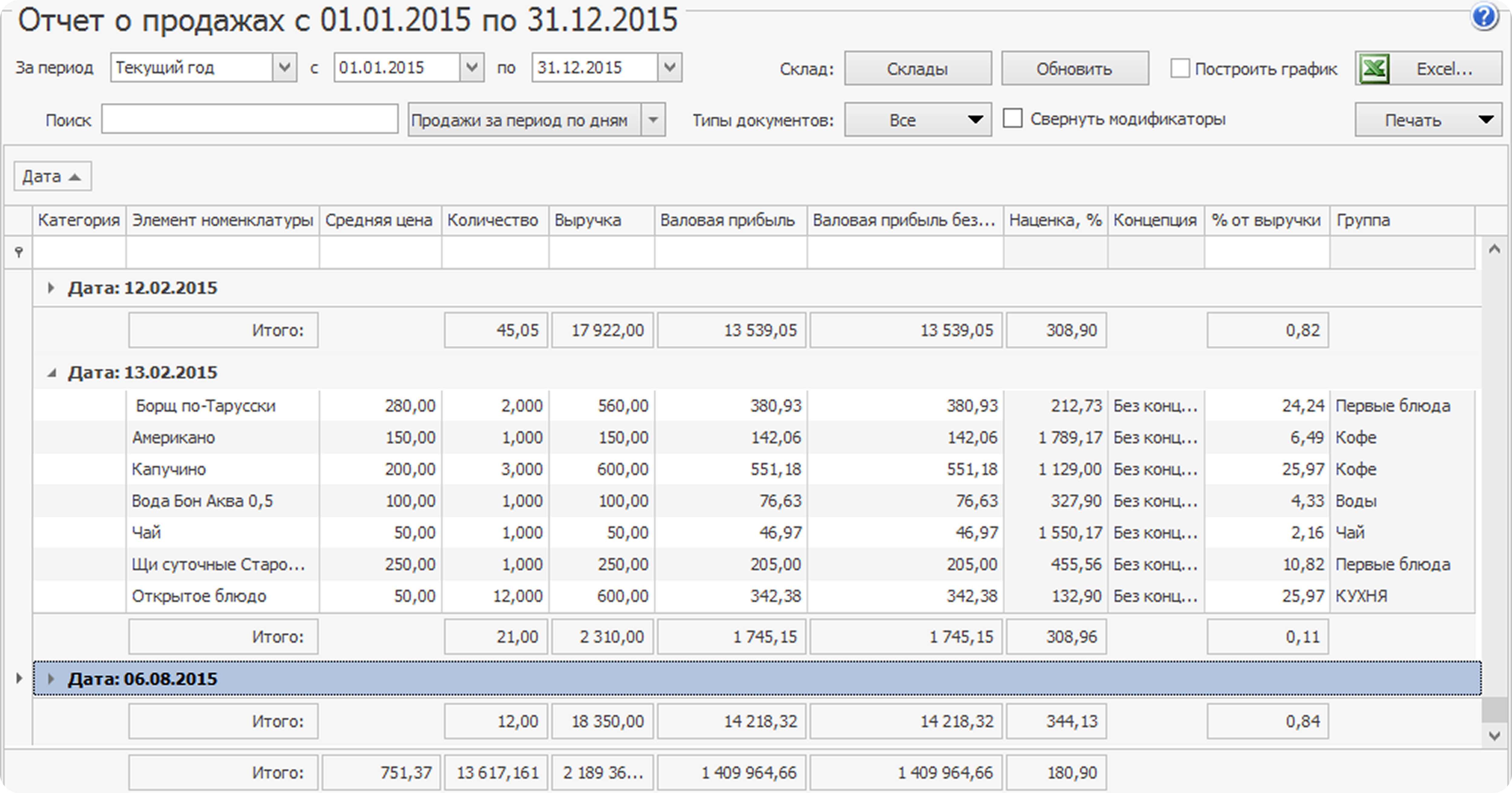 Отчет о продажах за период